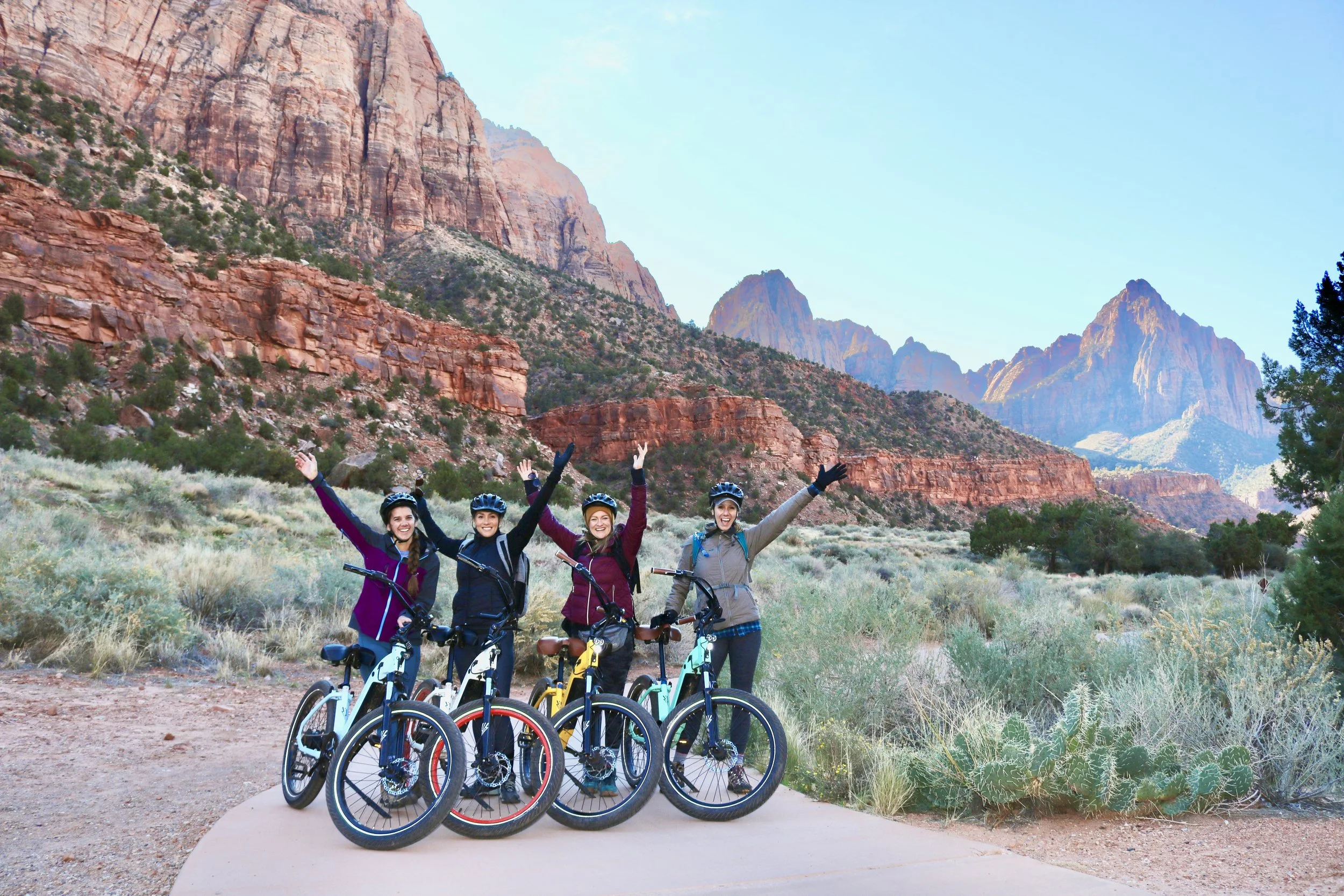 Logistics: Right outside of the park entrance, we rented bikes from Zion Peddler. The cost was $95 for a full day.