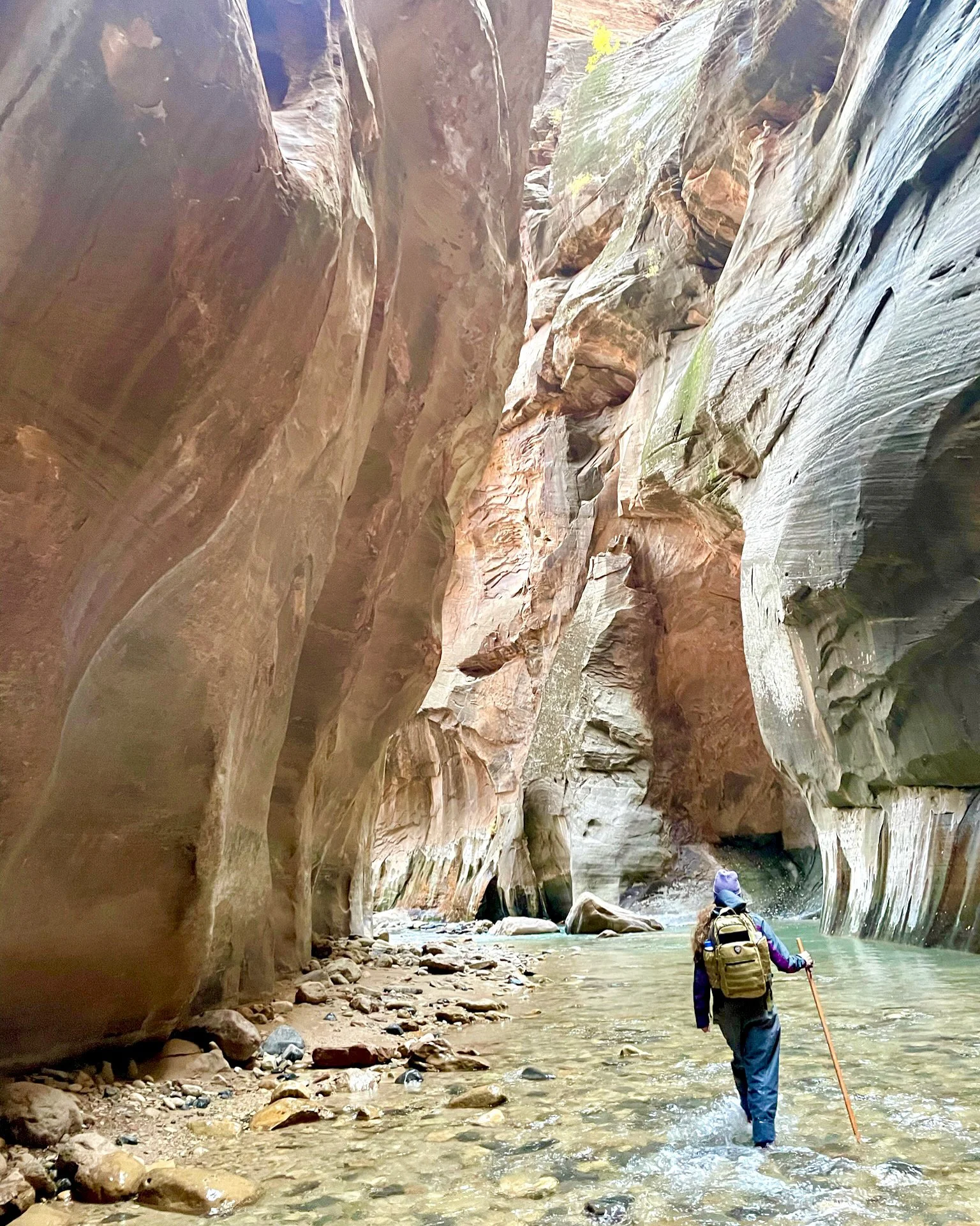 We parked our vehicle and stopped right outside the park (just over a walking bridge) to rent our equipment at Zion Outfitter for The Narrows hike. Just an FYI - you need to bring your park pass with you because technically you’re leaving the park to rent the equipment so you’ll need to show your pass when you re-enter.